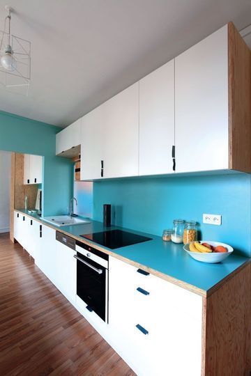 nouvelle ambiance cuisine bleu.