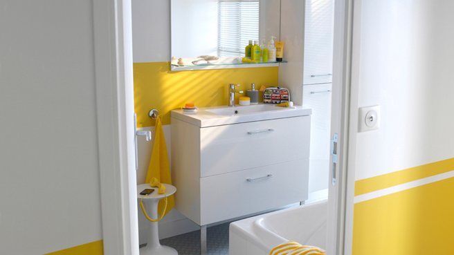 Infos sur la photo inspiration idée déco salle de bain jaune